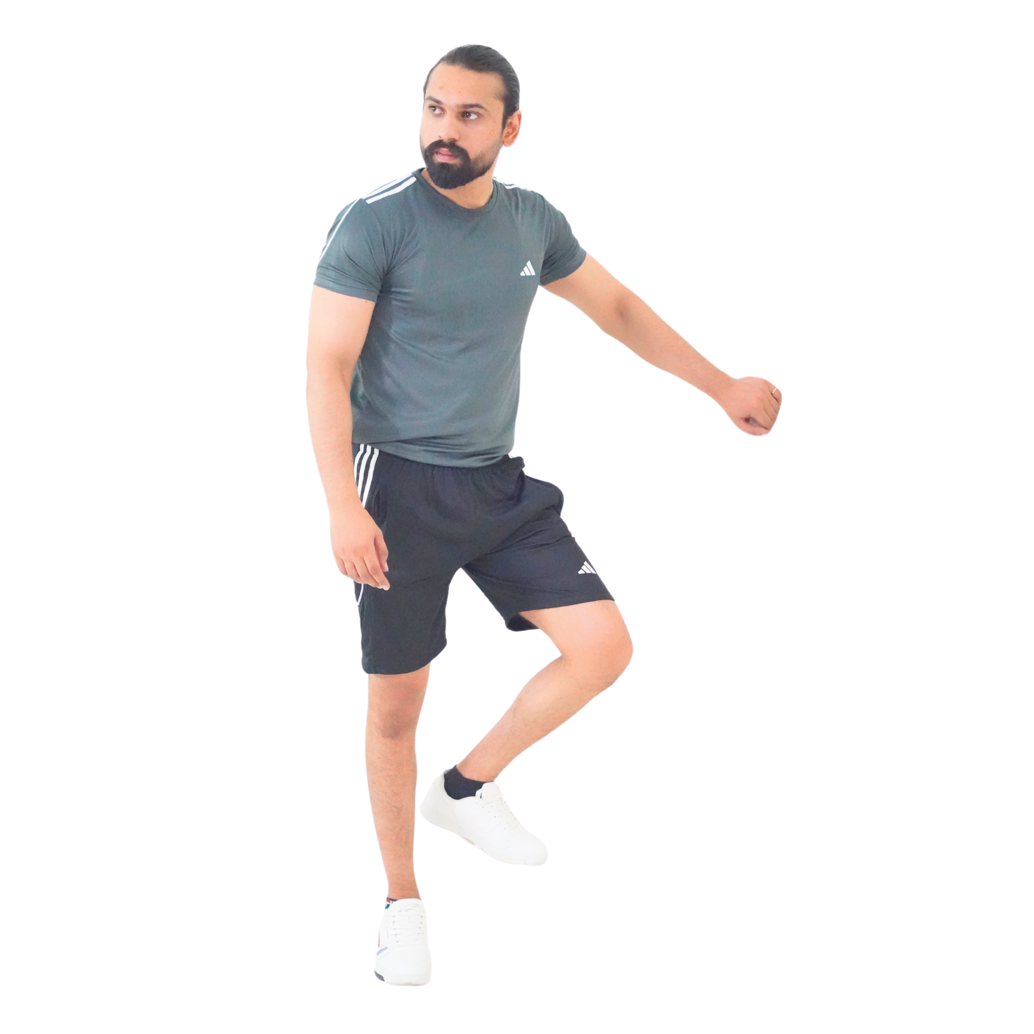 - Sleek Color Combination: The distinguished royal grey shirt paired with classic black shorts creates a timeless and versatile look that suits any activity.